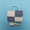 Metallic Color Contrast Shoulder Handbag – White With Blue
